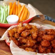 Crujientes Boneless bañados en tu salsa favorita, no olvides que todas nuestras porciones van acopañadas de vegetales (zanahoria y apio) y ranch (1).