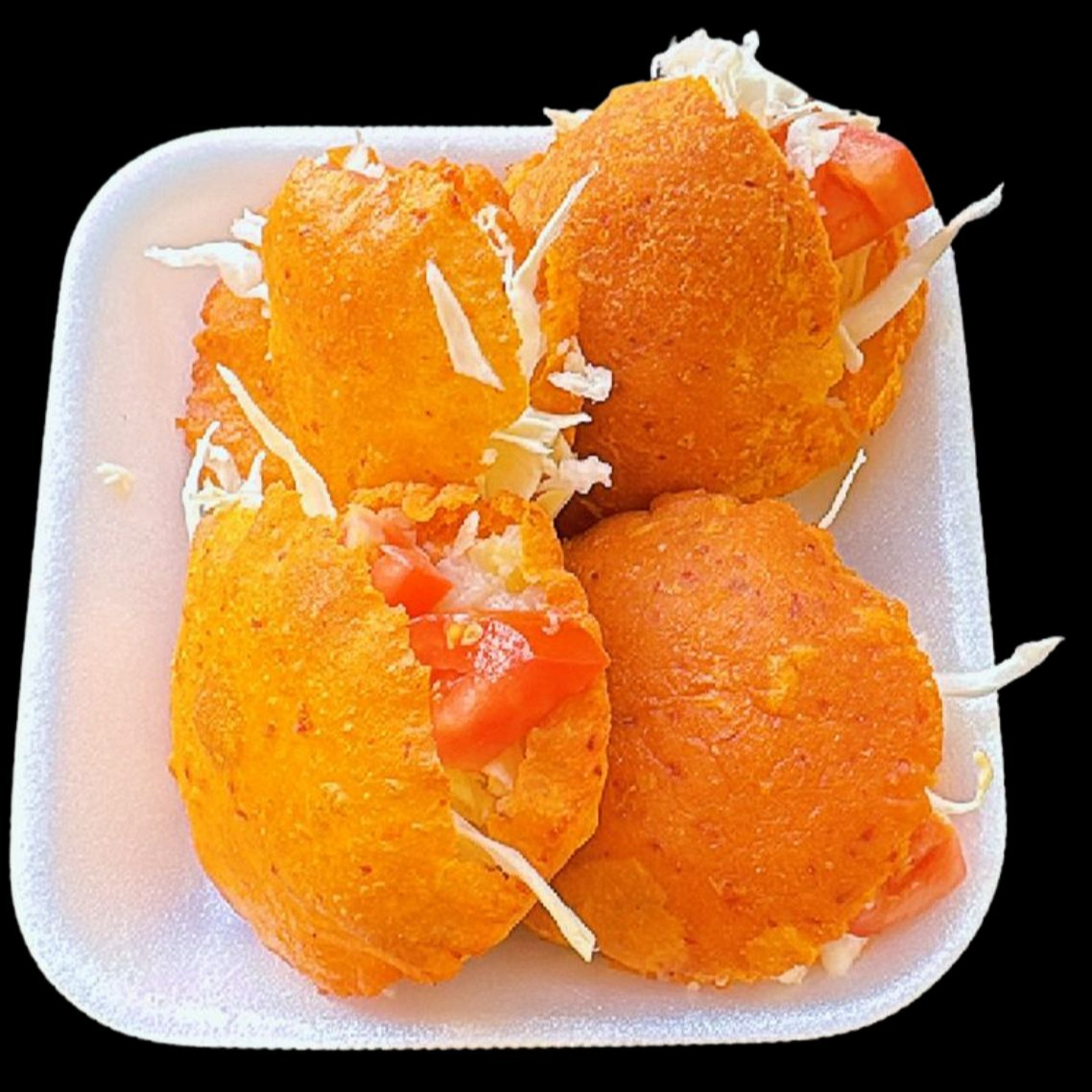 5 Gorditas de papa, Preparadas con repollo y tomate. salsa aparte.