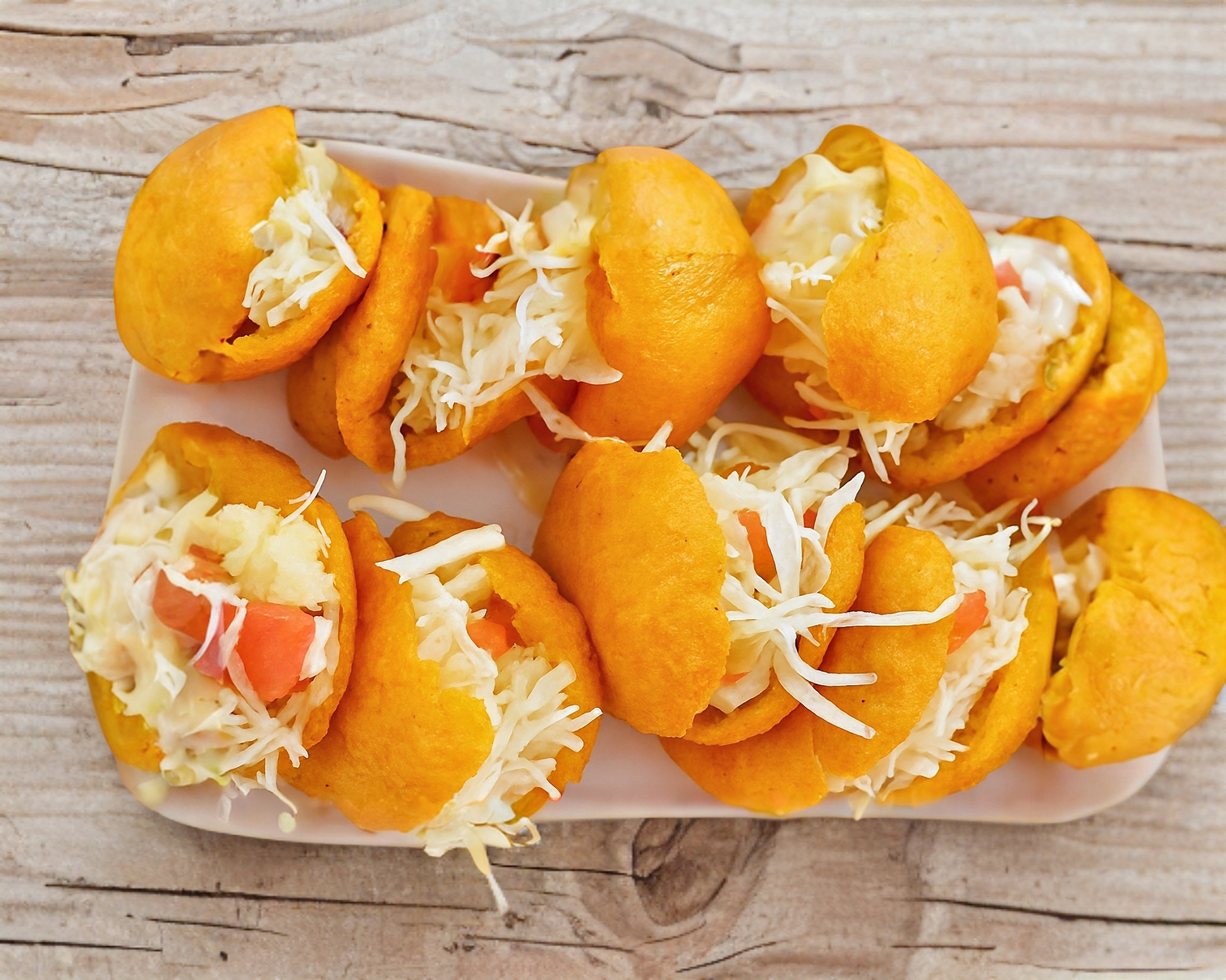 10 gorditas de maíz con papa Hechas con masa especial y rellenas de papa sazonada. Suaves por dentro, doraditas por fuera. ¡Pura delicia casera!