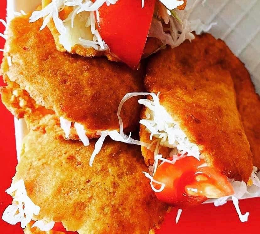4 Piezas, preparadas con repollo y tomate. Salsa aparte.