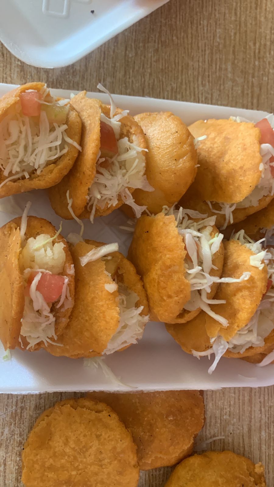 4 piezas. Preparados con repollo, tomate y queso blanco rallado. Salsa a parte.