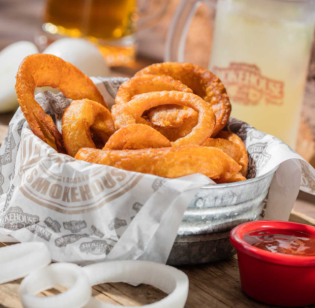Lo mejor de la carne blanda y ahumada de res, con aros de cebolla.