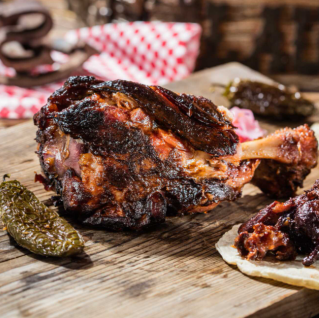 Impecablemente ahumado, tortillas de maíz, limón y nuestras cebollas con habanero.