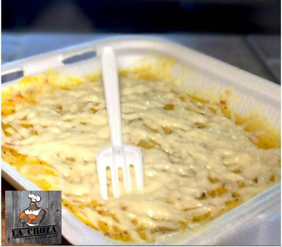 Paquete de aguja asada que incluye salchicha campestre, cebollitas, tortillas, toreados, y una papa asada.
