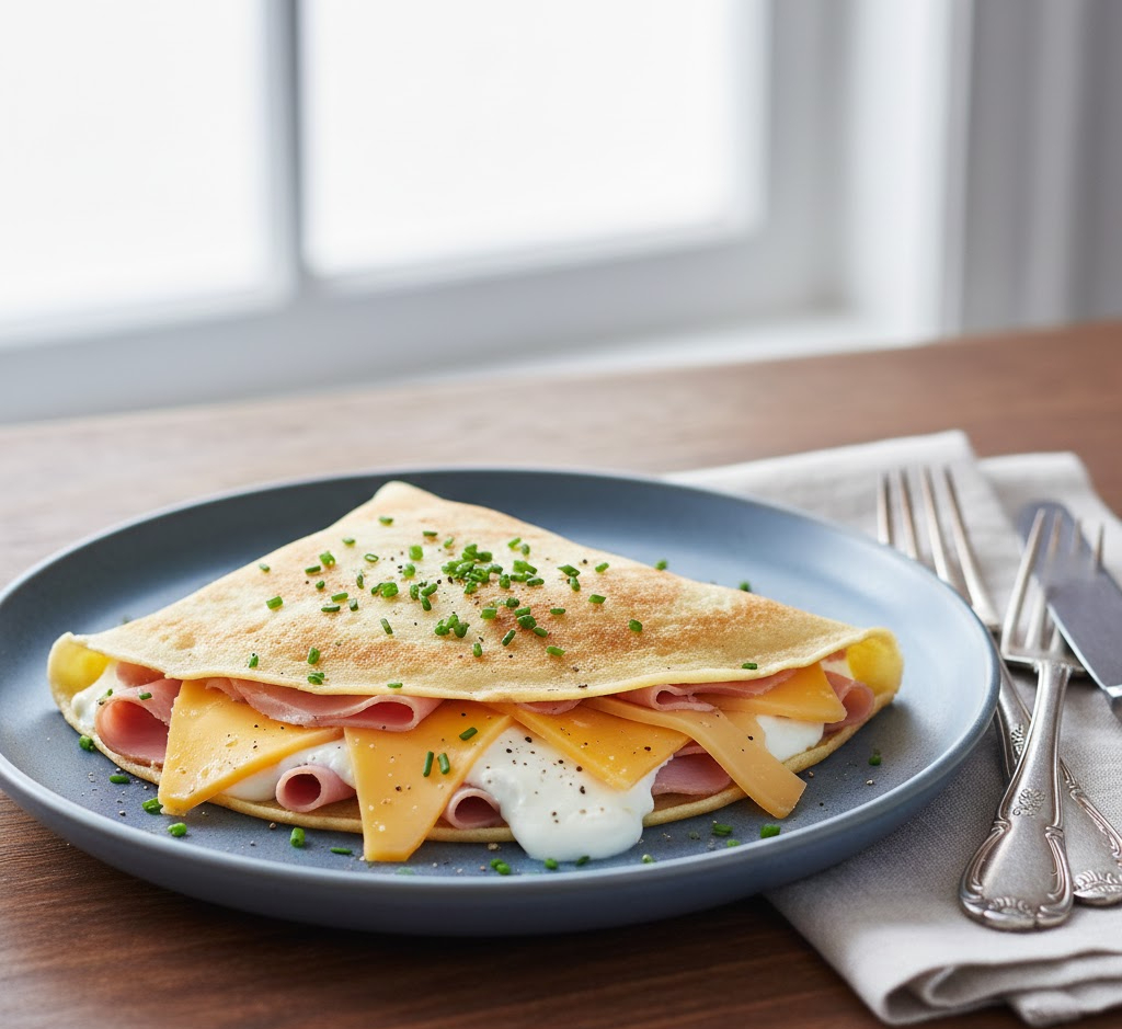 Deliciosa crepa de Philadelphia, queso manchego y jamón