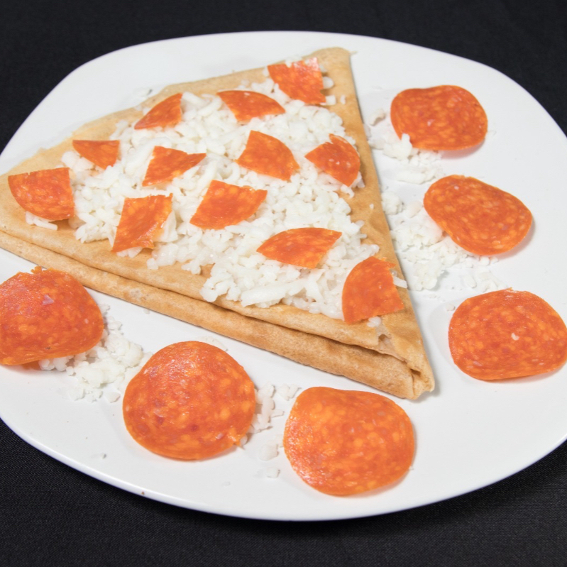 Deliciosa crepa de queso manchego gratinado con pepperoni