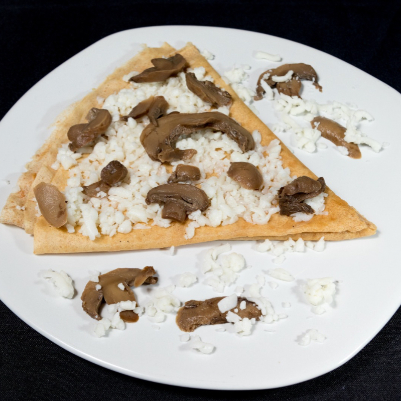 Deliciosa crepa de queso manchego gratinado con champiñon