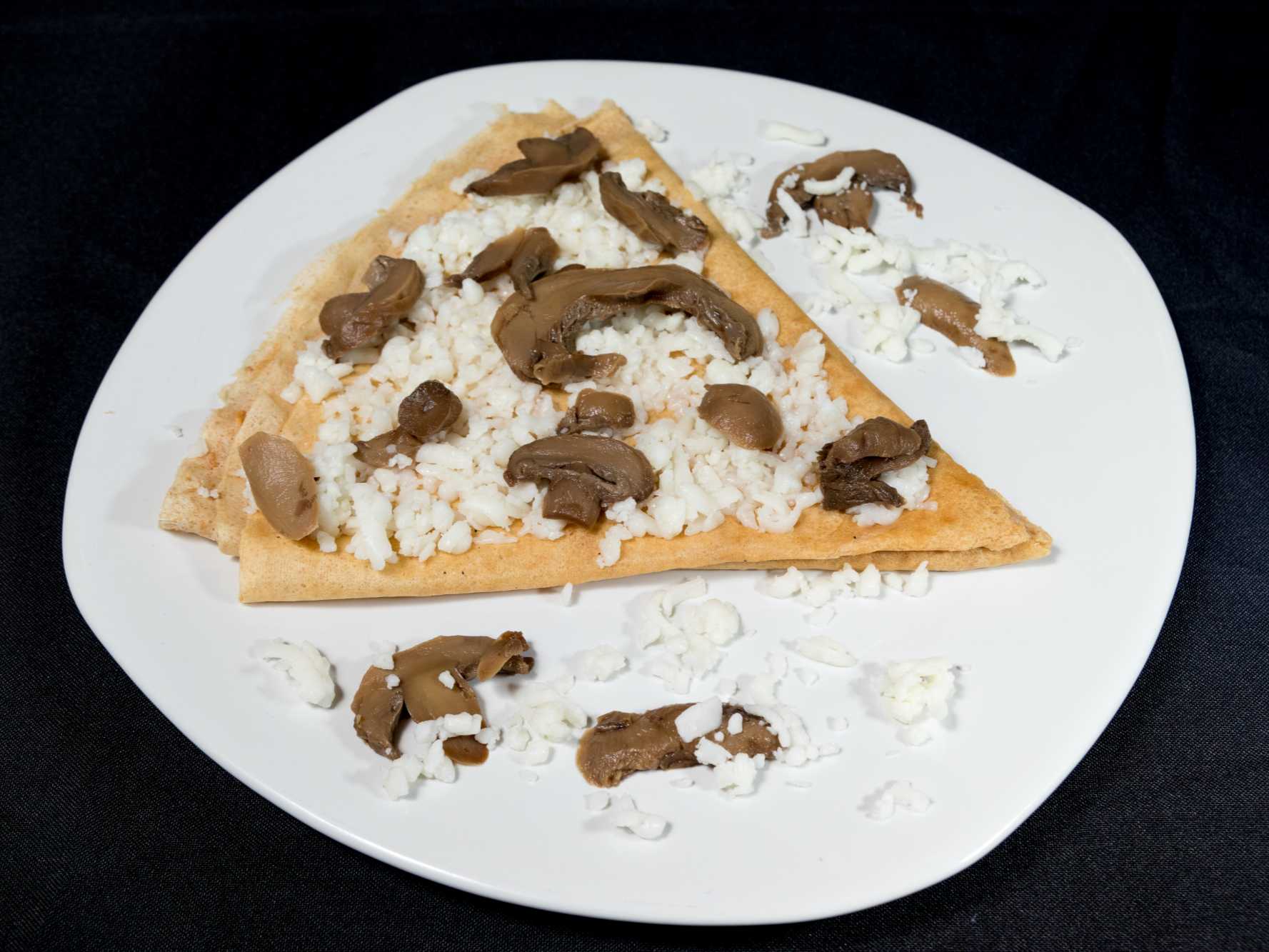 Deliciosa crepa de queso manchego gratinado con champiñon