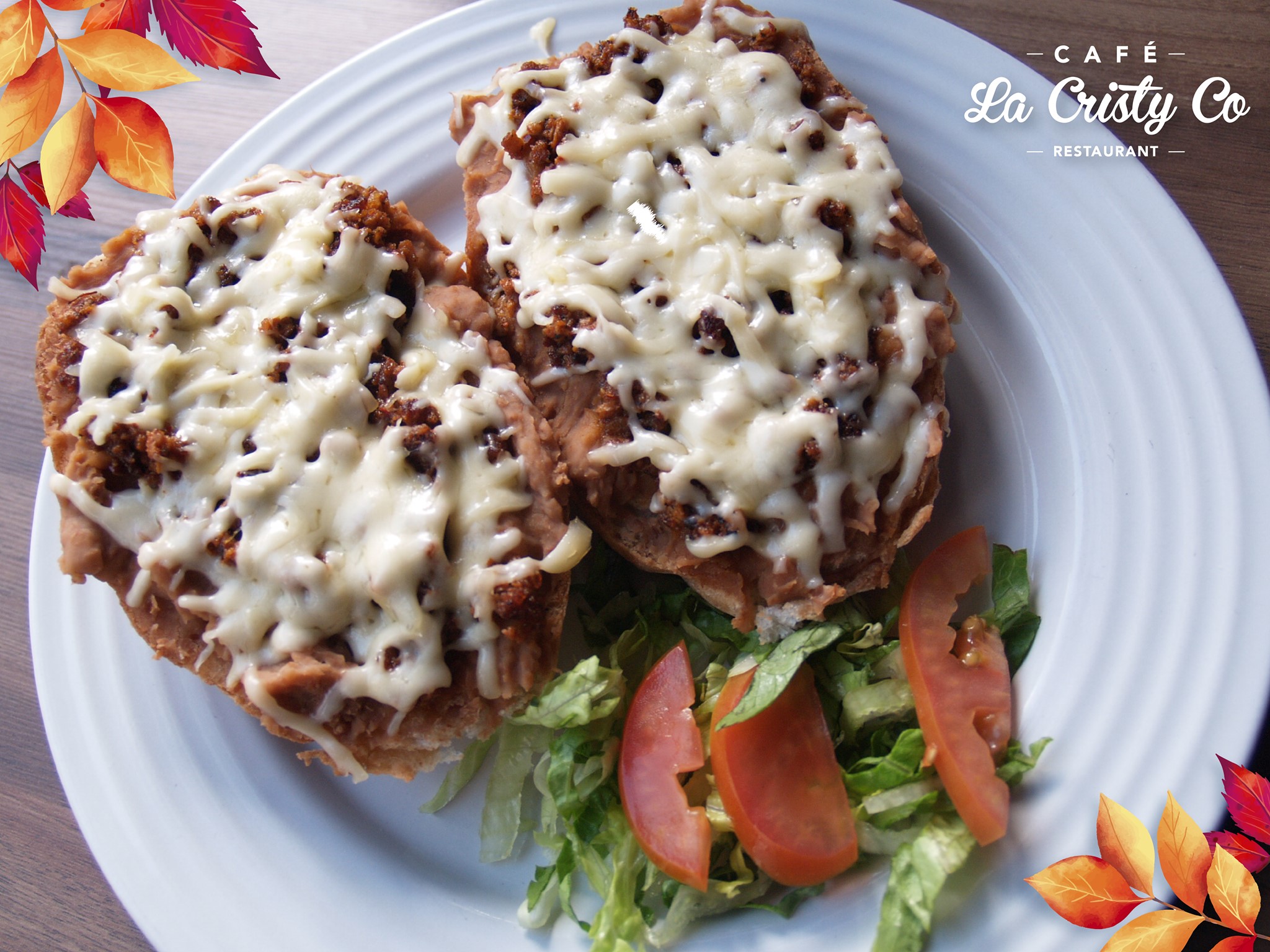 Rellenas de queso o de pollo, bañandas en tomate. Acompañadas de frijoles, arroz y verdura.