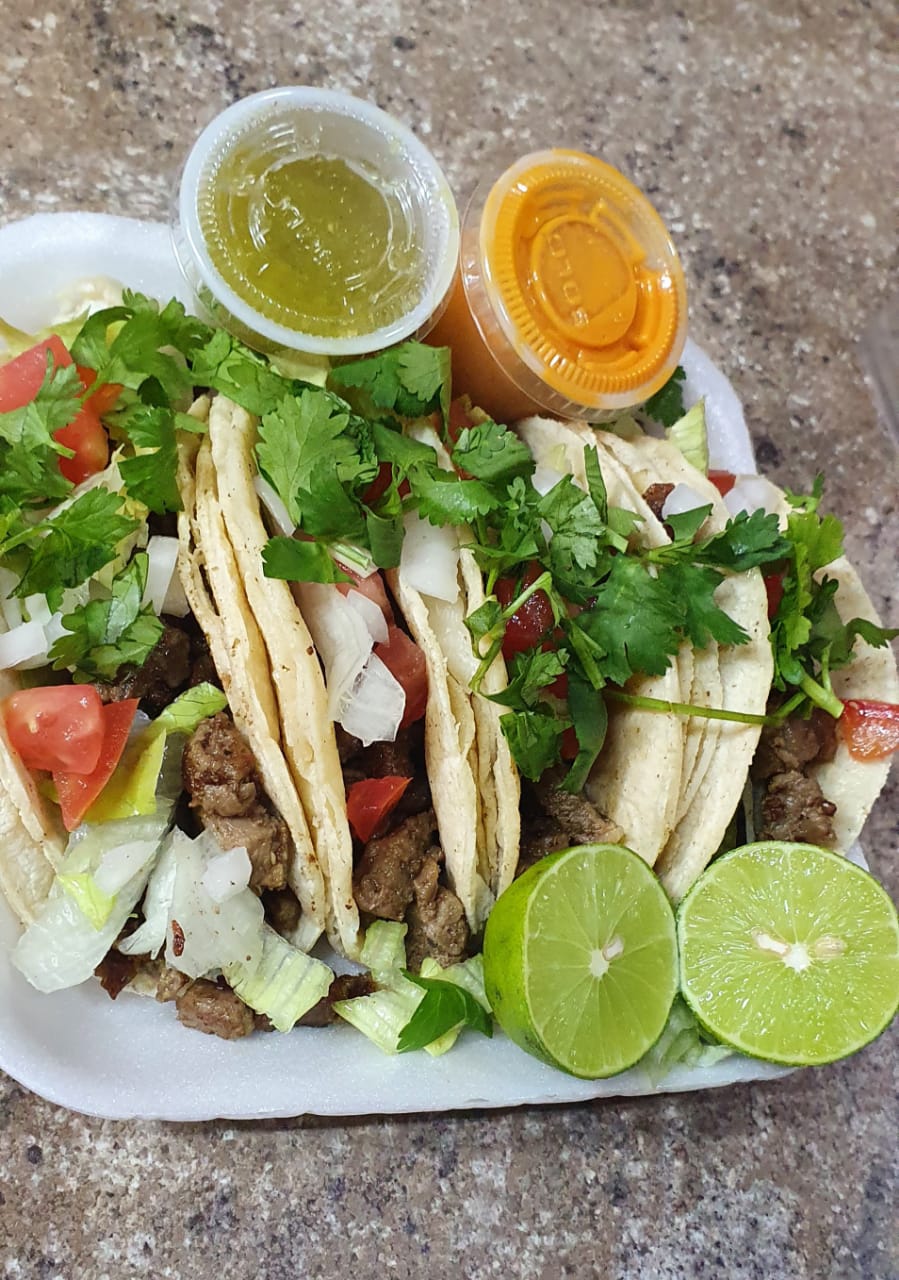 Carne, lechuga, cebolla,tomate, cilantro y limón
