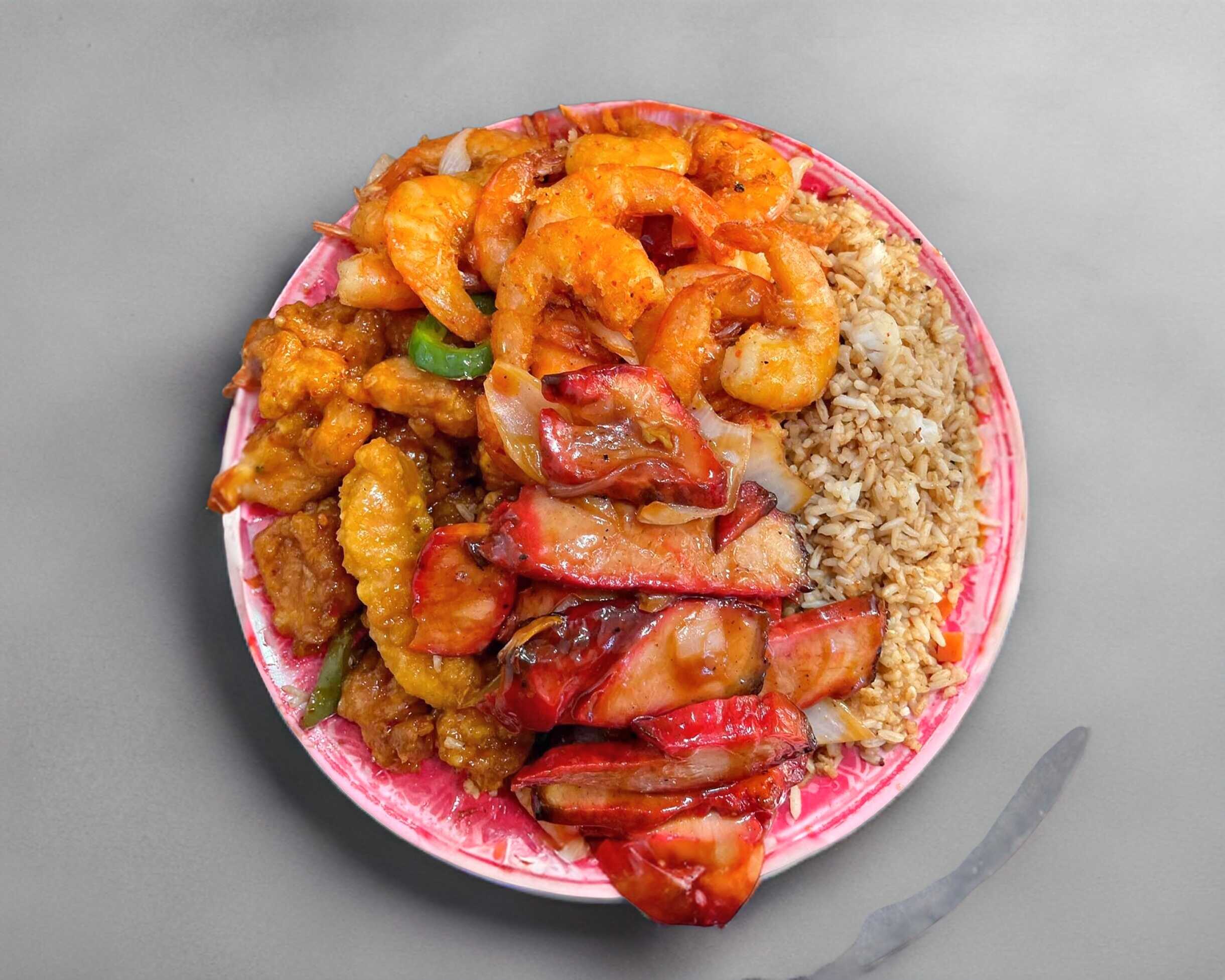 Camarón + 1 Guiso + Arroz o Spaghetti