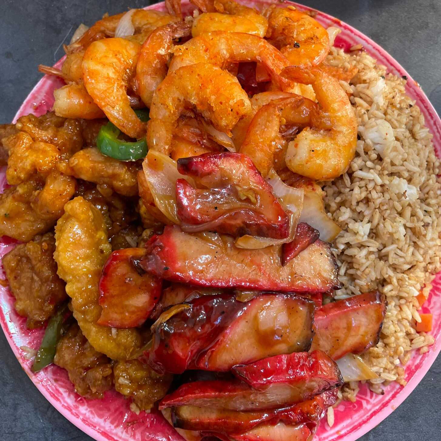 Camarón + 2 Guiso + Arroz o Spaghetti