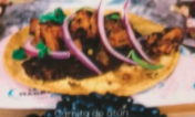 Montado sobre tortilla de nixtamal, frijolitos, cilantro y cebolla morado.