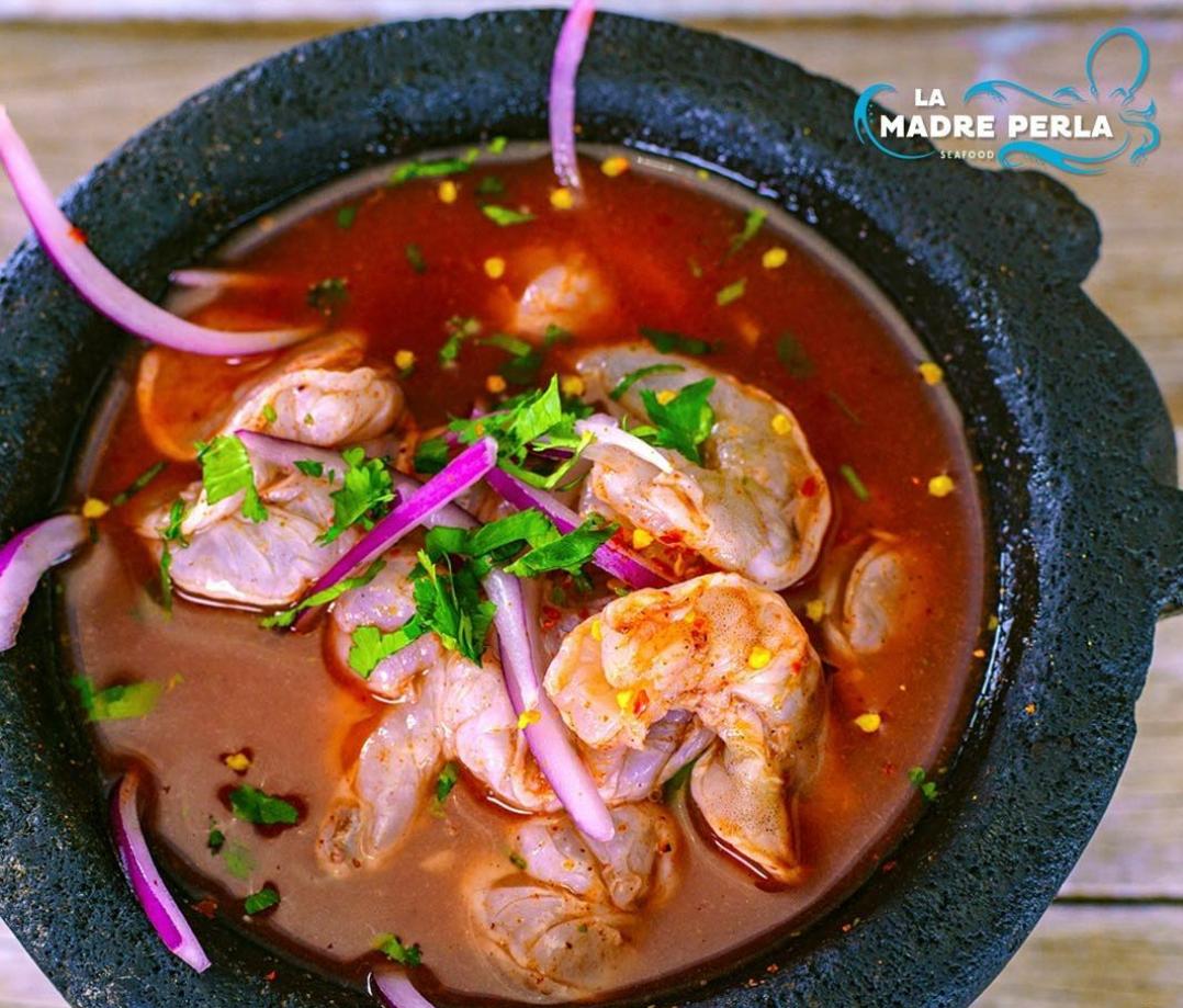 Servido en su concha, marinada con especias y el toque de La Madre Perla.