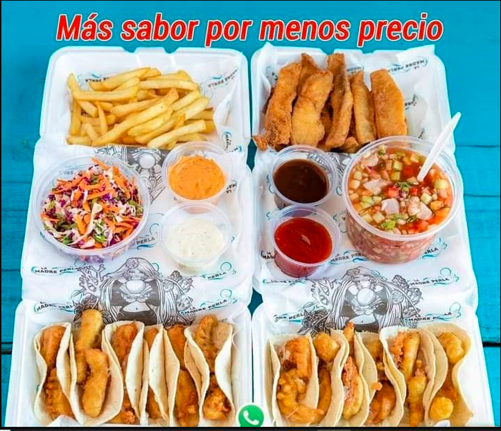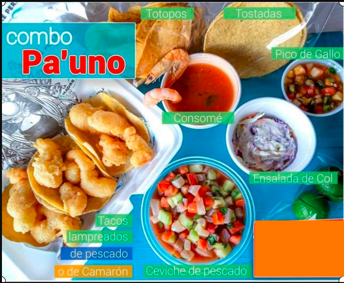6 Tacos Lampreados de Pescado*1 + 6 Tacos Lampreados de Camarón*1 + Chicharrón de Pescado*1 + Papas Fritas*1 + 1/2 Litro de Ceviche de Pescado*1 + Ensalada Dip + Pico de Gallo + Tostadas y Totopos