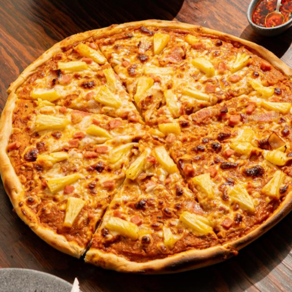 Mix de piña, tocino y jamón de pavo.