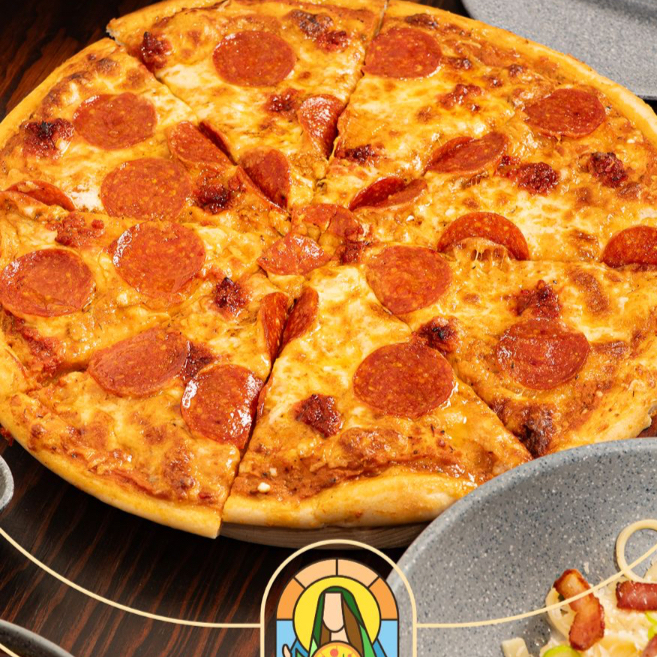 Pepperoni clásico dorado y salsa de tomate casera.