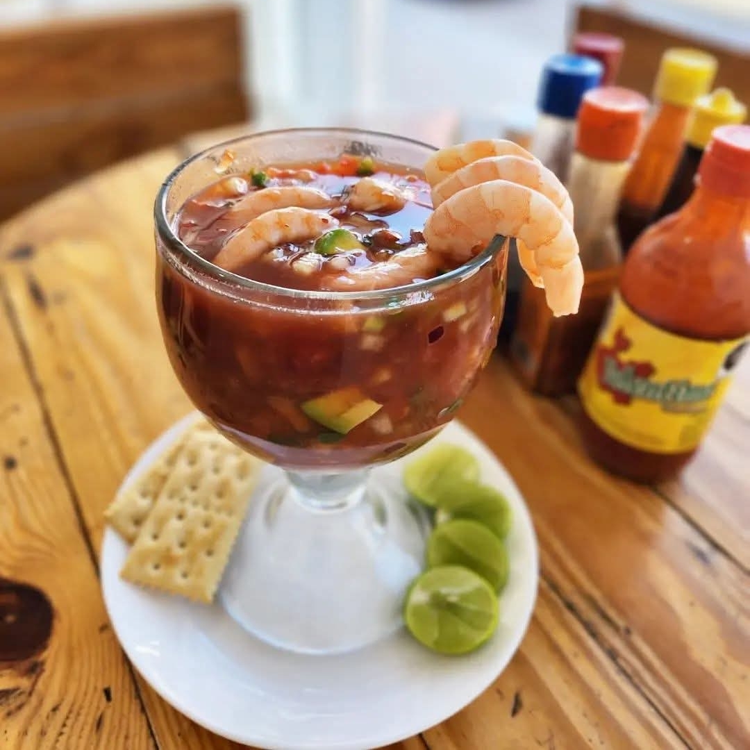 Camarón mezclado con pepino, tomate, cebolla, chile jalapeño y limón bañado con una salsa especial de la casa y clamato acmpañado de galletas saladas