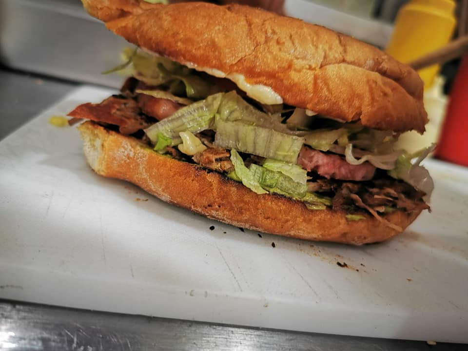 Deliciosa carne de cerdo, asadero, aguacate, lechuga, tomate y mayonesa.