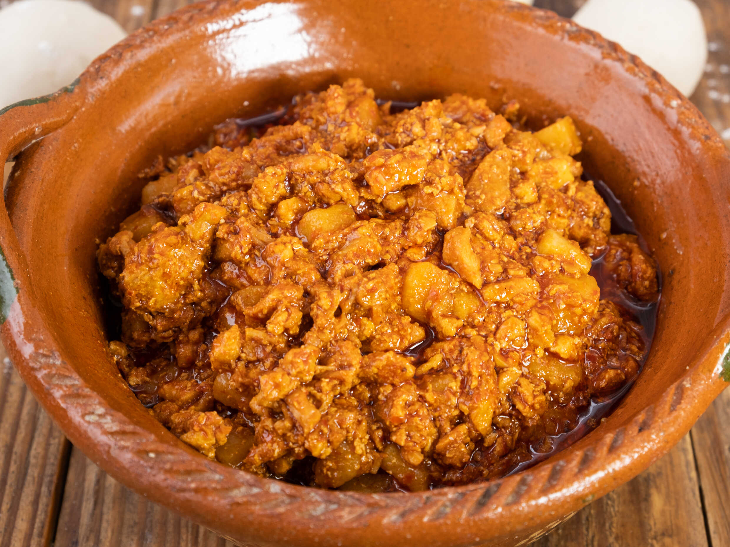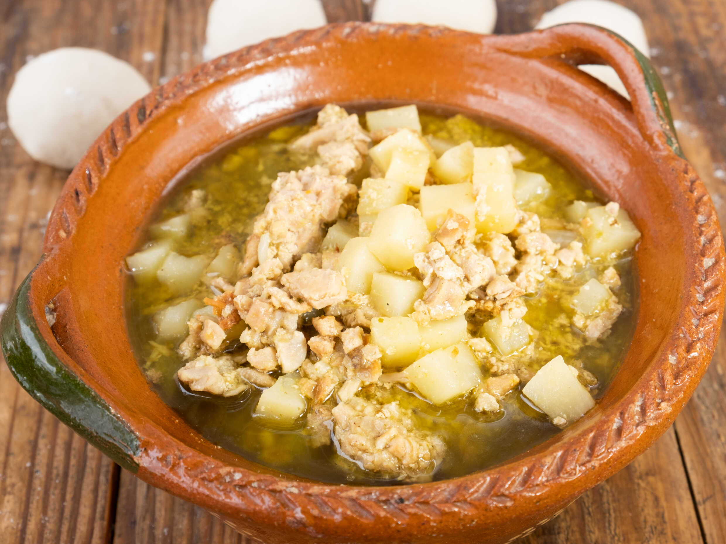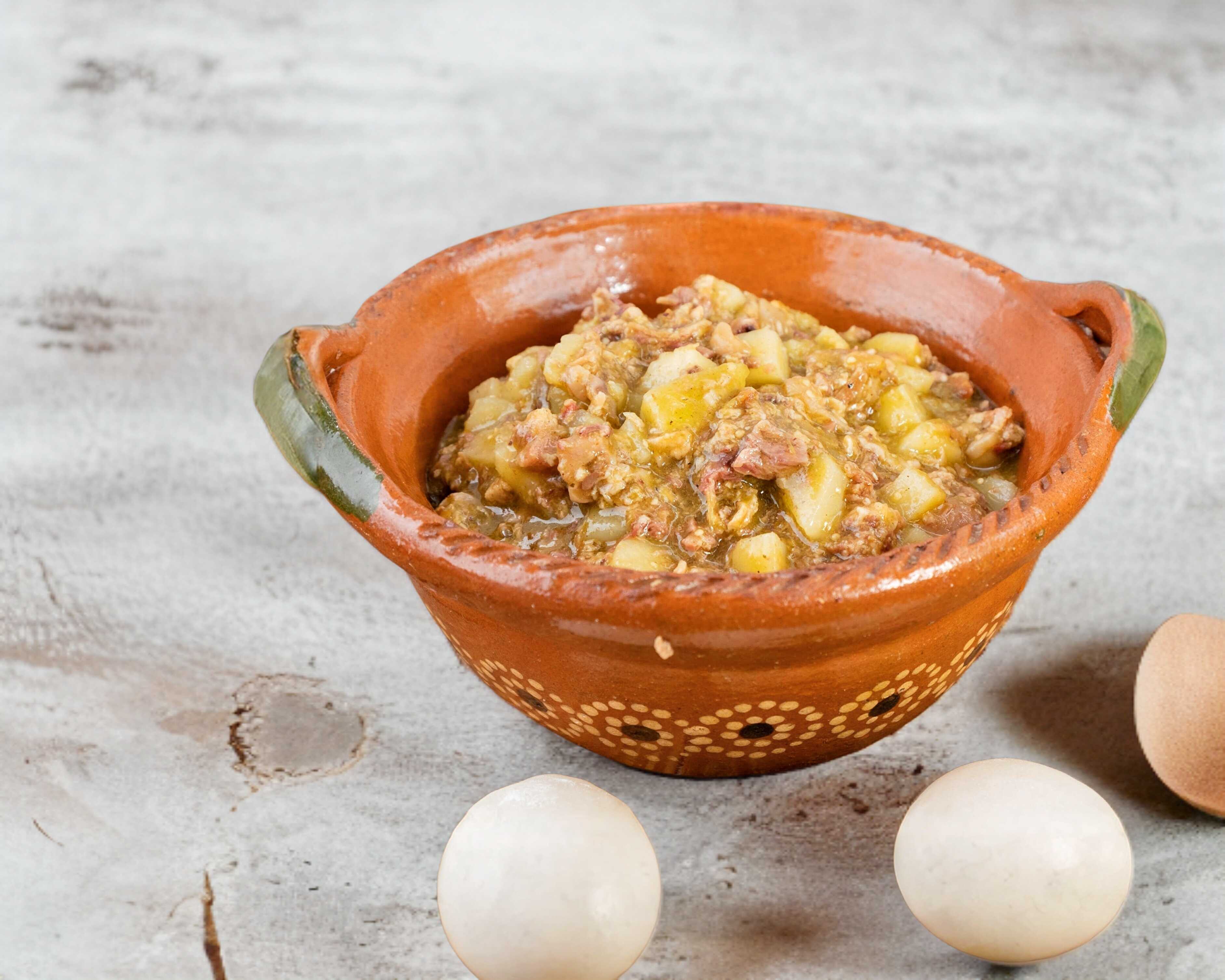 Salsa, frijoles, tortillas y 3 chiles rellenos.