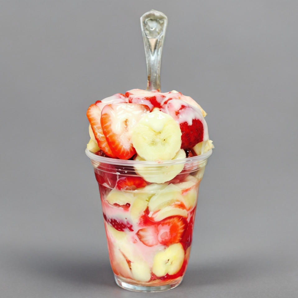 Deliciosas fresas con crema acompañadas con tu topping favorito.