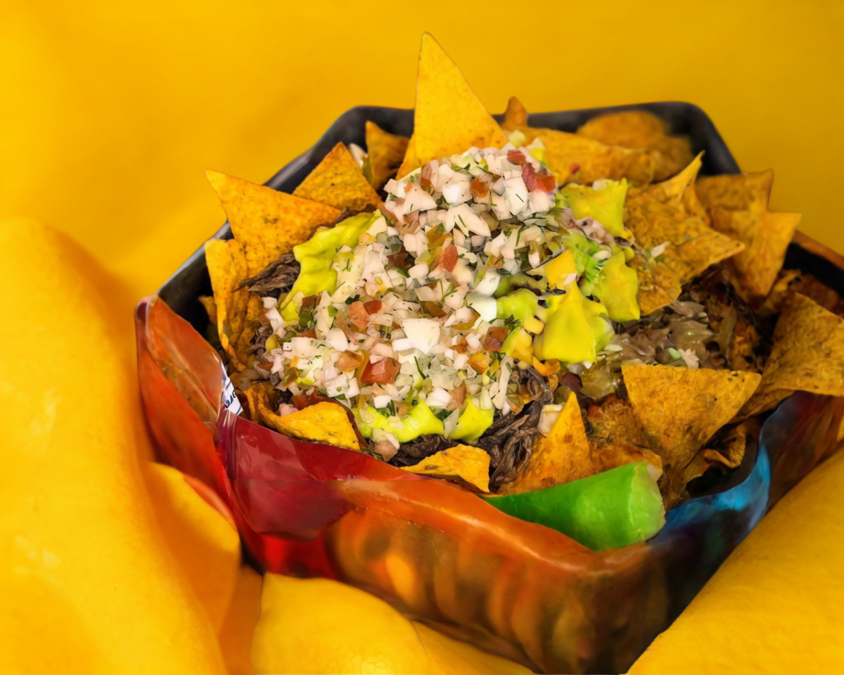 Tus papitas americanas con queso amarillo, pico de gallo, crema y aguacate