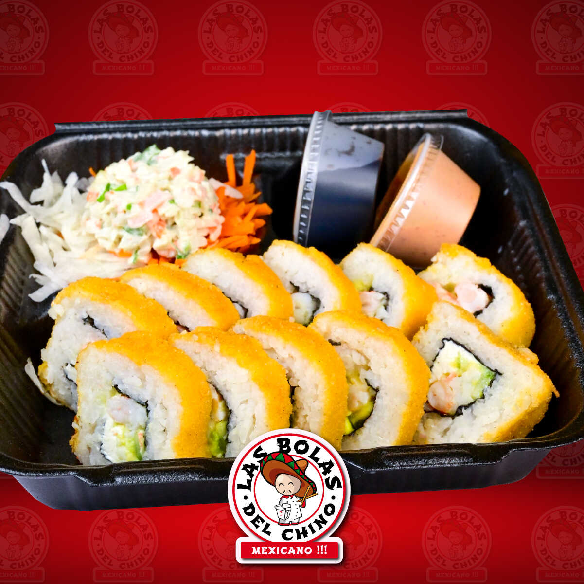 Rollo empanizado con una proteína a elegir, aguacate, queso philadelphia, alga, jícama, zanahoria y dos salsas a elegir.