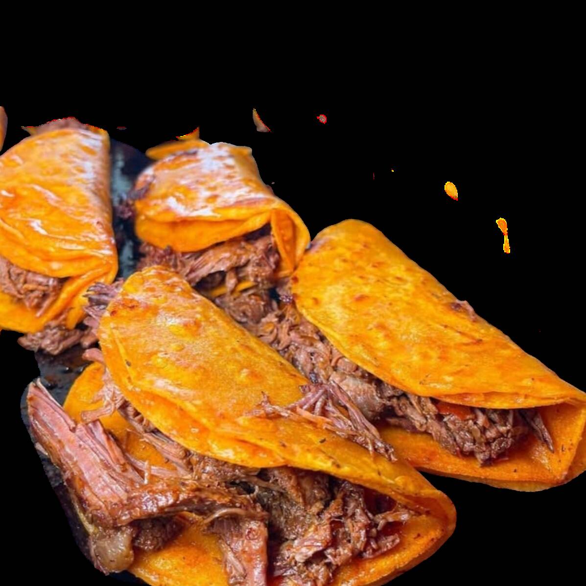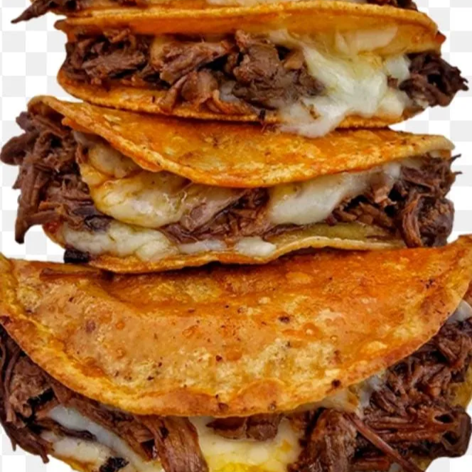 ORDEN DE 4 QUESIBIRRIAS DE MAIZ BOBLE TORTILLA DE MAIZ CARNE DE BIRRIA DE RES QUESO CONSOME DE 6 OZ DE REGALO CILANTRO, CEBOLLA, REPOLLO, LIMON Y SALSA ROJA LAS VERDURAS BIENEN POR SEPARADO PPREPARAR