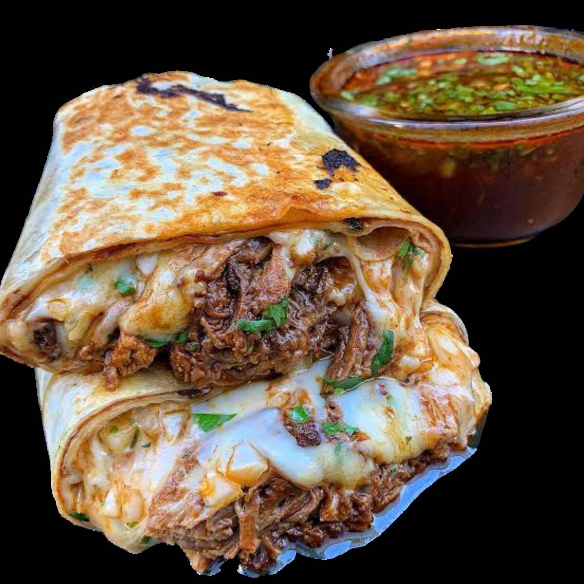 PAN CARNE DE BIRRIA DE RES CON QUESO Y CONSOME DE 6 OZ DE REGALO CILANTRO, CEBOLLA, REPOLLO, LIMÓN Y SALSA ROJA LAS VERDURAS BIENEN POR SEPARADO PARA PREPARAR AL GUSTO