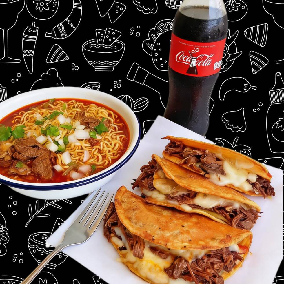 QUESIBIRRIAS MAIZ (4) CON CONSOME DE REGALO*1 + BIRRIAMEN DE 1/2 LITRO*1 + Coca Cola 600 ml*1