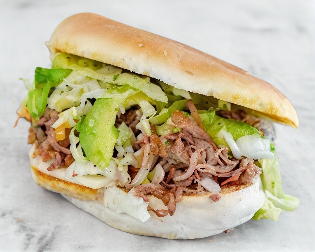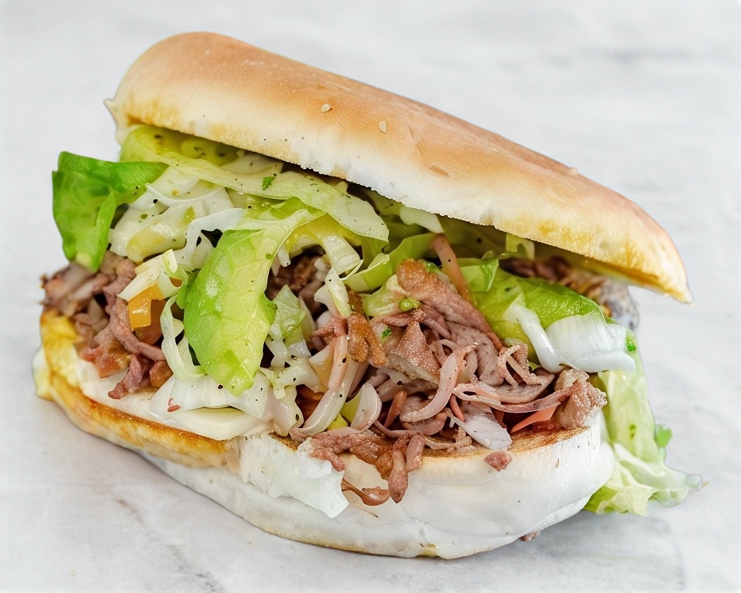 Carne deshebrada de res, jamon, queso, aguacate, verdura y mayonesa