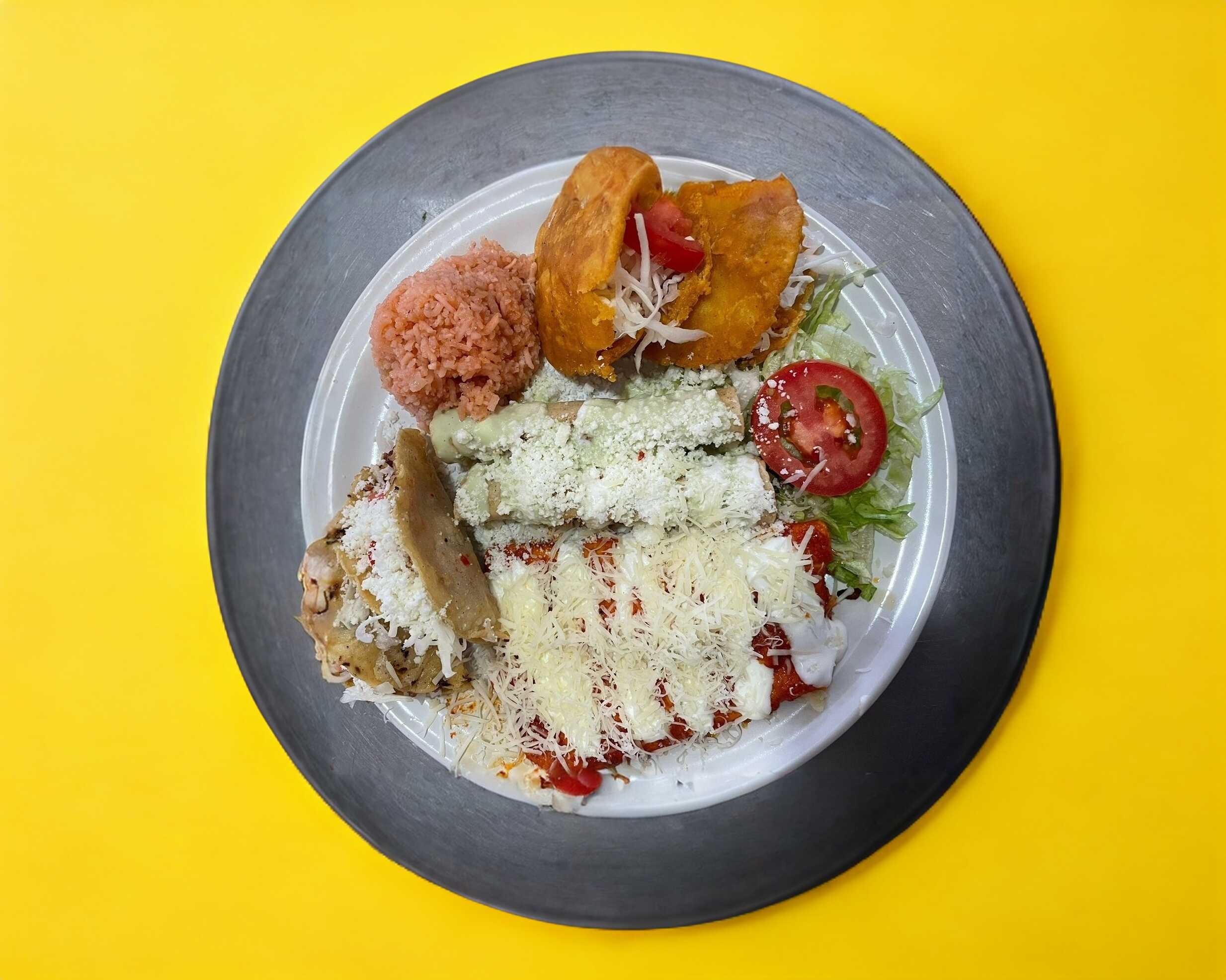 2 Gorditas, 2 taquitos, 2 flautas y 2 enchiladas.