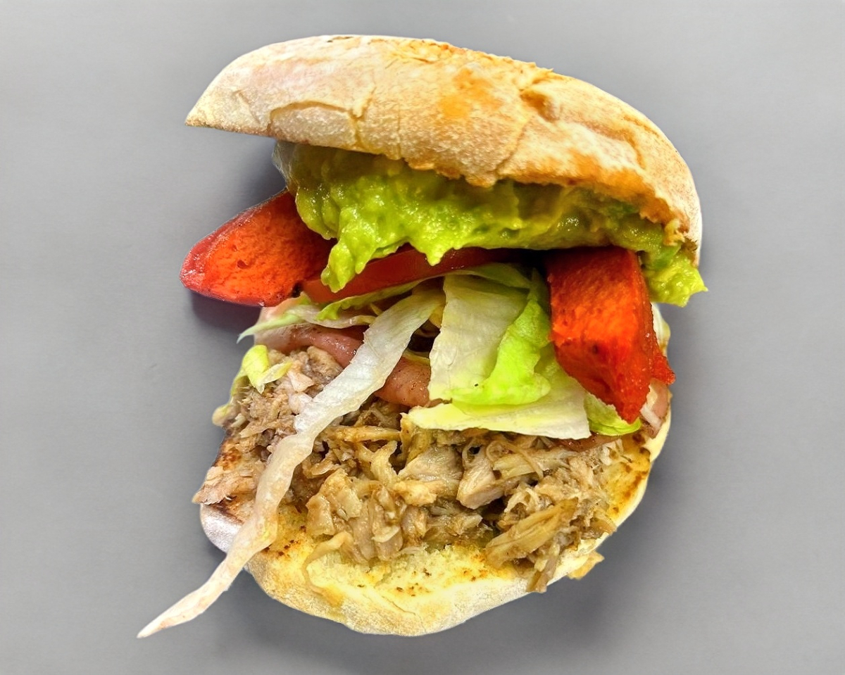 Pierna, jamón, queso, tocino, verdura y triple aguacate.(porción personal)