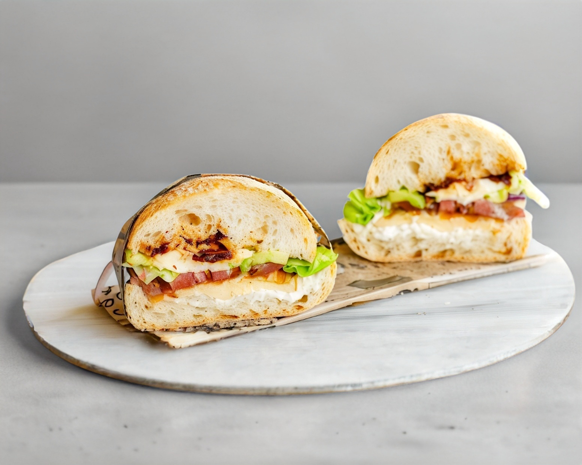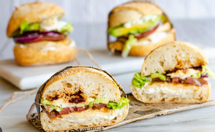 Pierna, jamón, queso, tocino, verdura y aguacate.