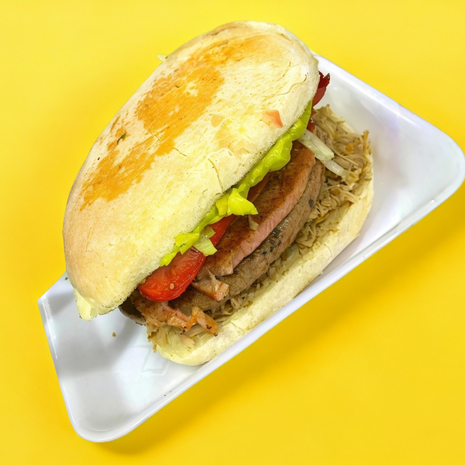 CARNE ASADA, JAMON, QUESO, TOCINO, LECHUGA, TOMATE, AGUACATE Y MAYONESA