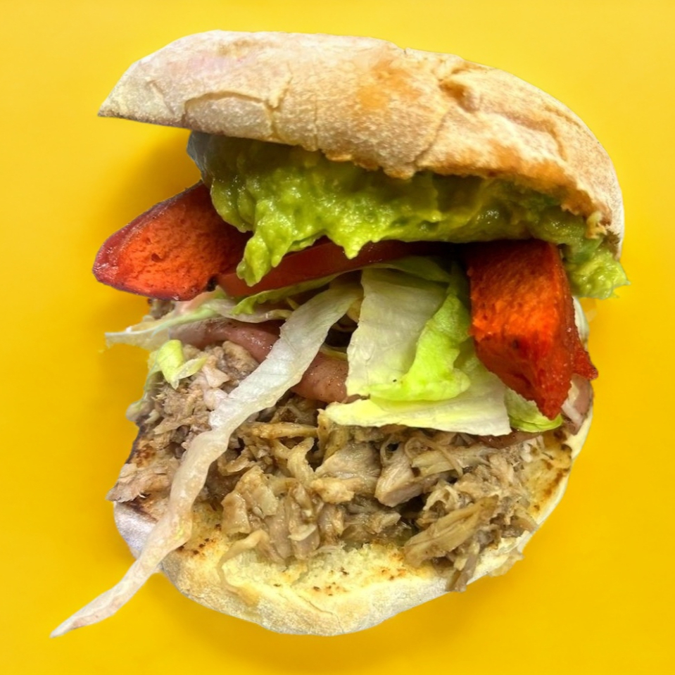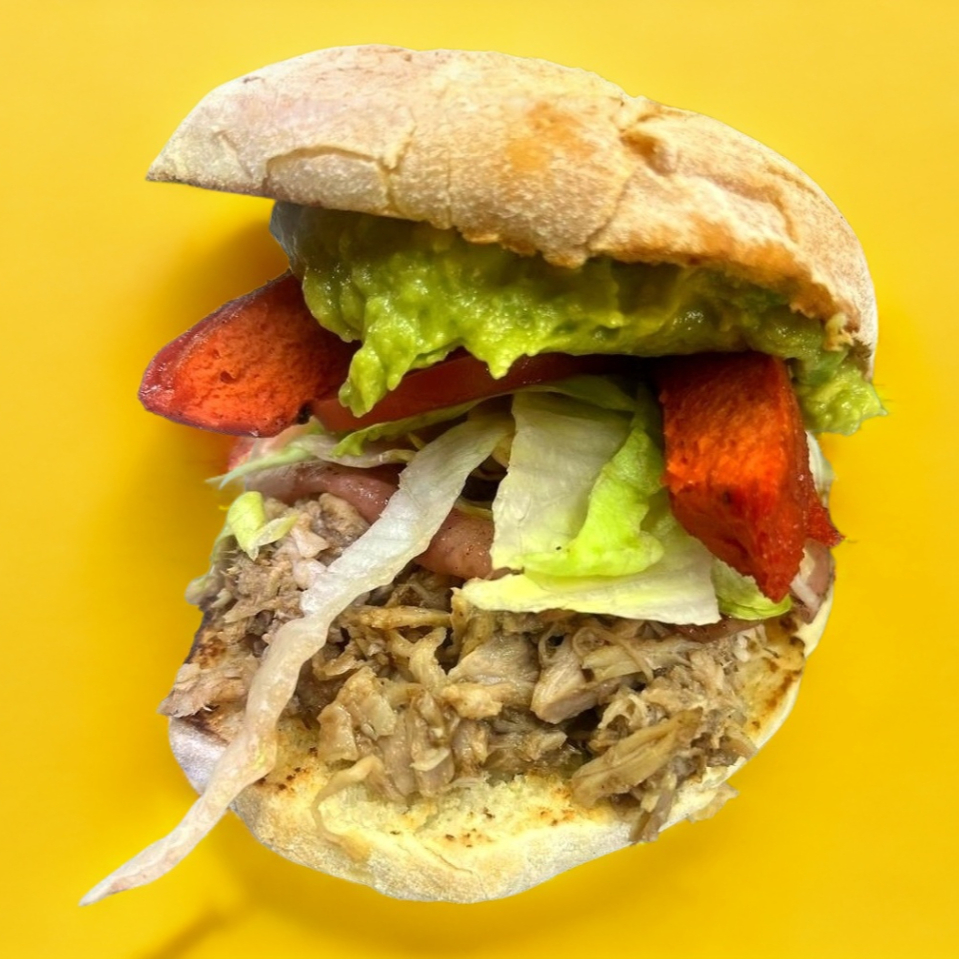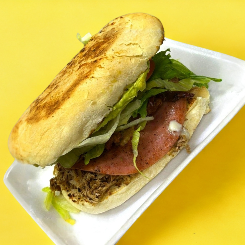 PIERNA, JAMÓN, QUESO ,TOCINO, SALCHICHA ASADA, LECHUGA, TÓMATE, AGUACATE Y MAYONESA