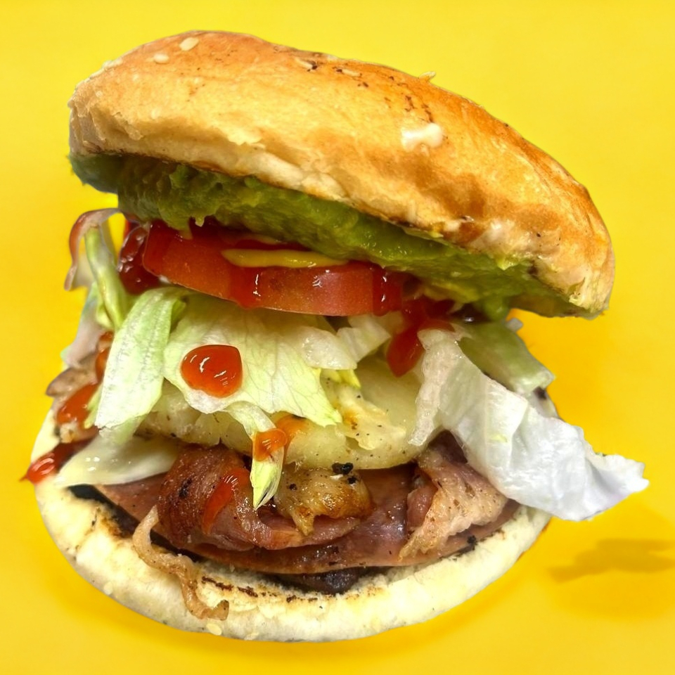 CHULETA AHUMADA, Jamón, Queso, Tocino, Salchicha Asada, Lechuga, Tomate, Aguacate, Mayonesa