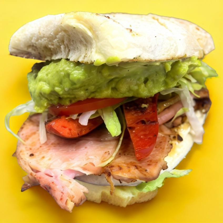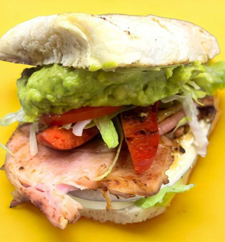 TRIPLE AGUACATE, Pierna, Jamón, Queso, Tocino, Lechuga, Tomate, Mayonesa
