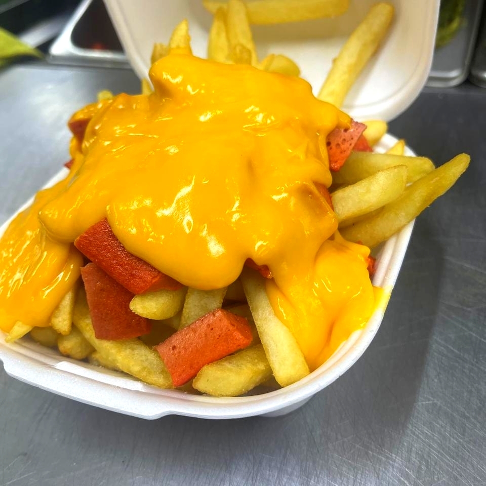 Papas a la francesa, Salchicha Asada y picada, Queso Amarillo para Nachos