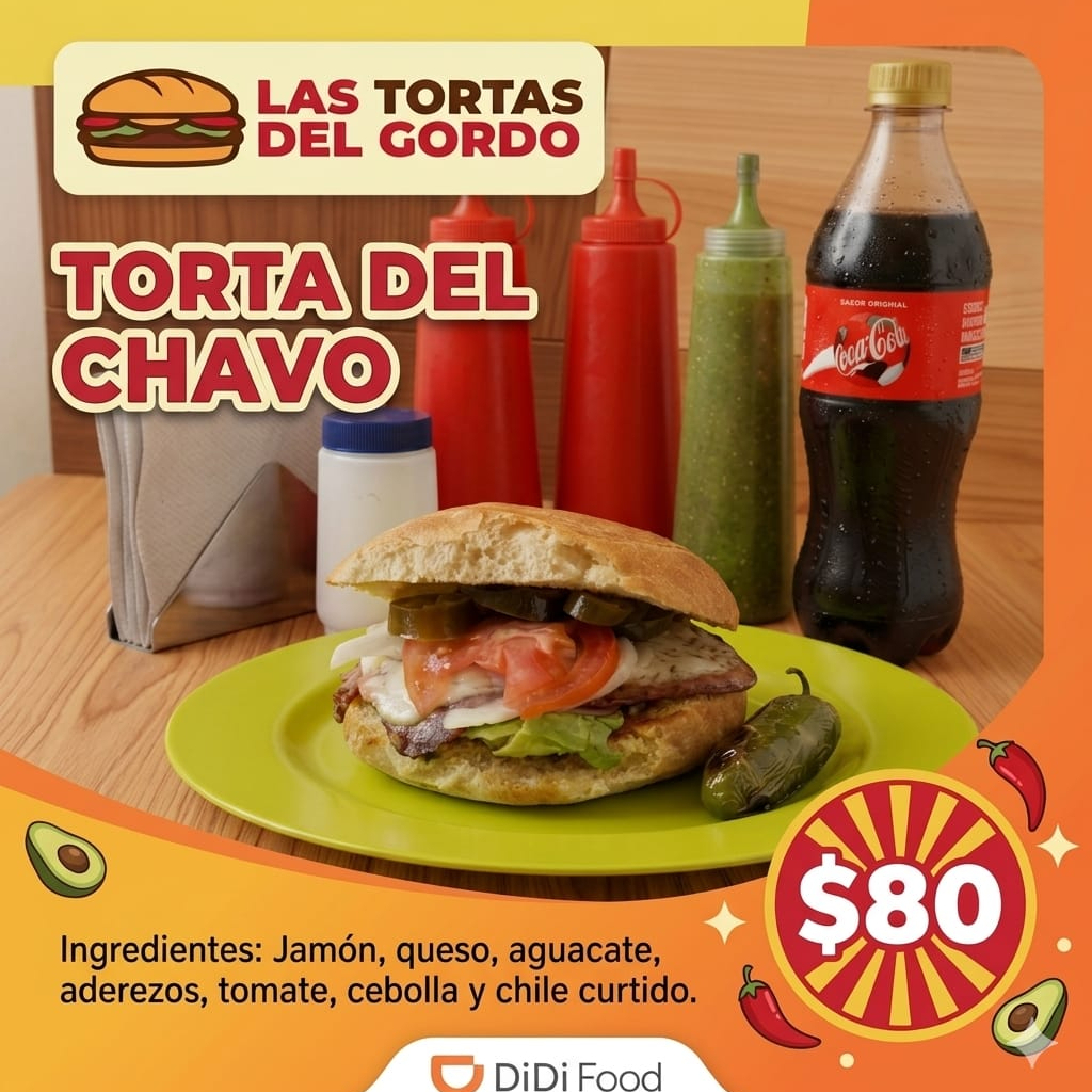 Jamon,queso,aguacate,tomate, cebolla, chiles curtidos y aderezos