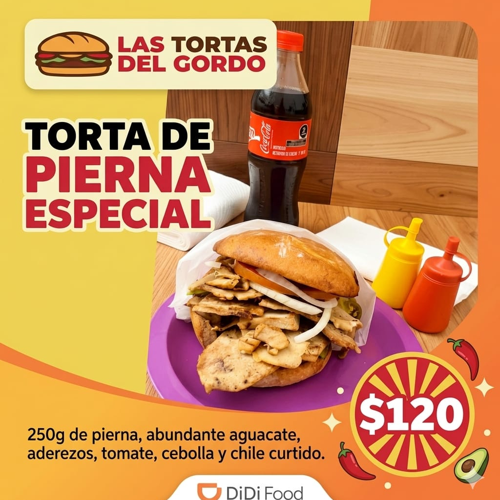 200g de pierna,aguacate,cebolla,tomate,chiles curtiodos y aderezos