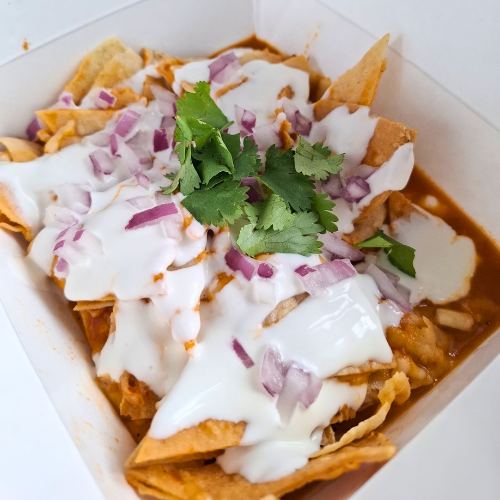 Deliciosos chilaquiles en tu salsa favorita (roja, verde o chipotle cremosita)