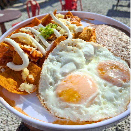 Deliciosos chilaquiles con 2 huevos estrellados o revueltos