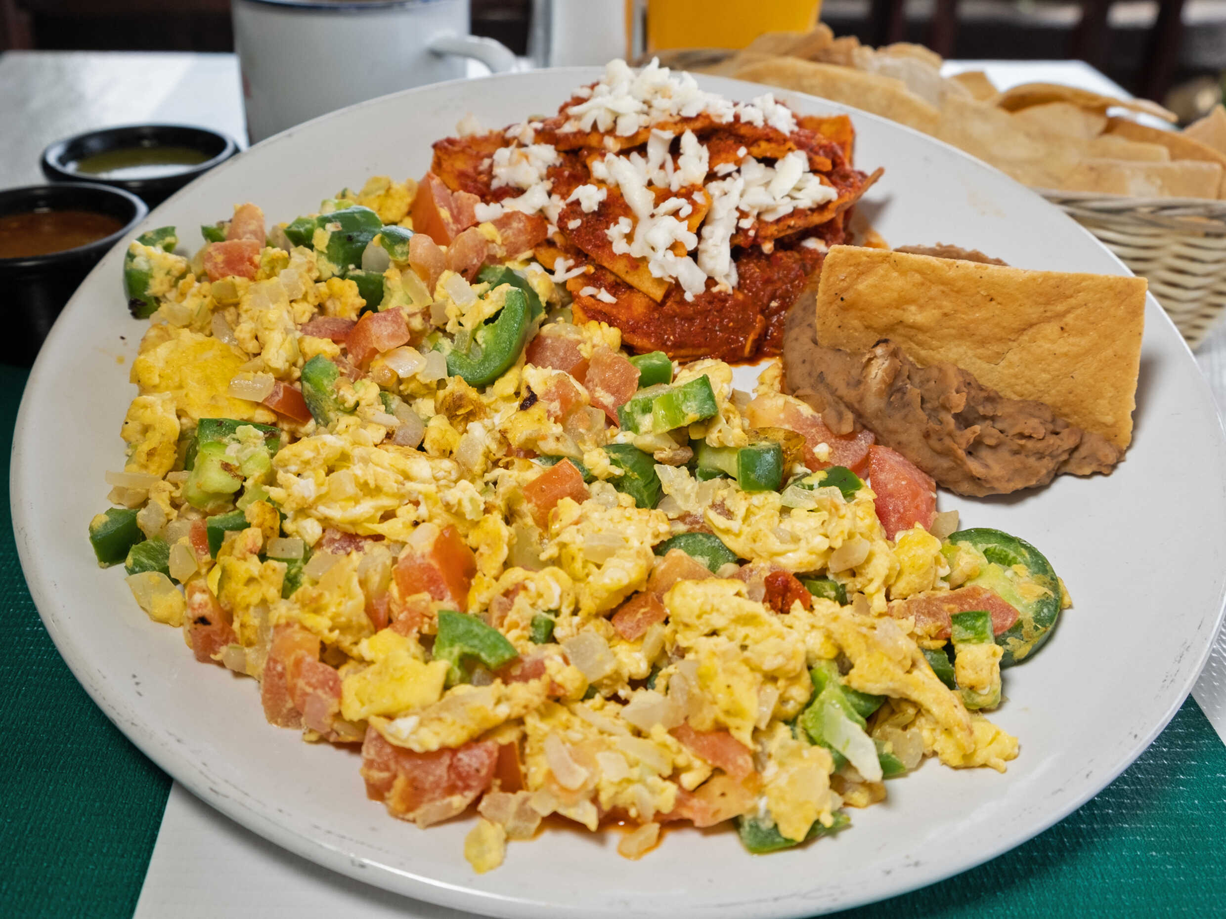 Revueltos con frijoles graneados acompañado de 2 complementos y tortillas de harina