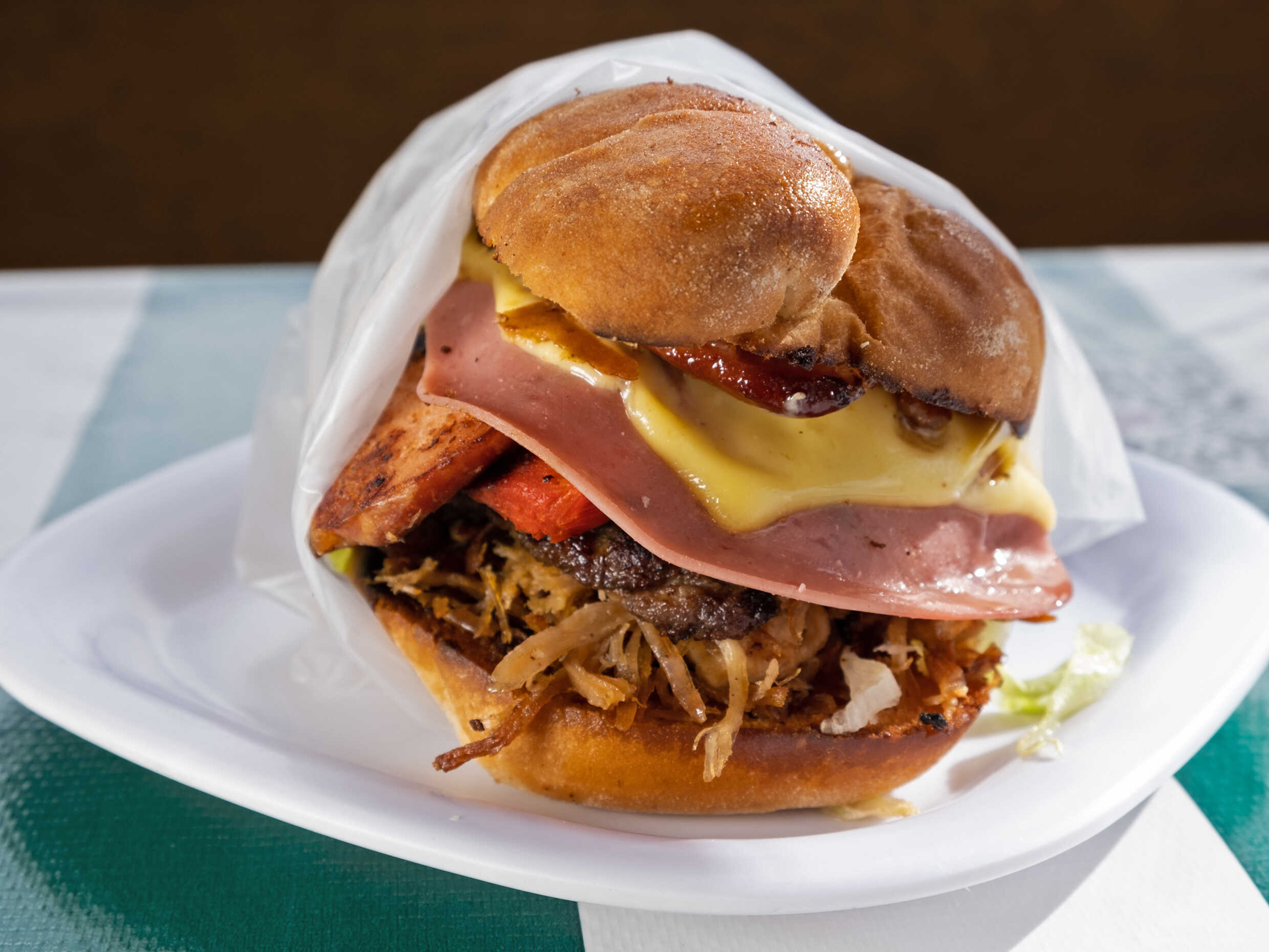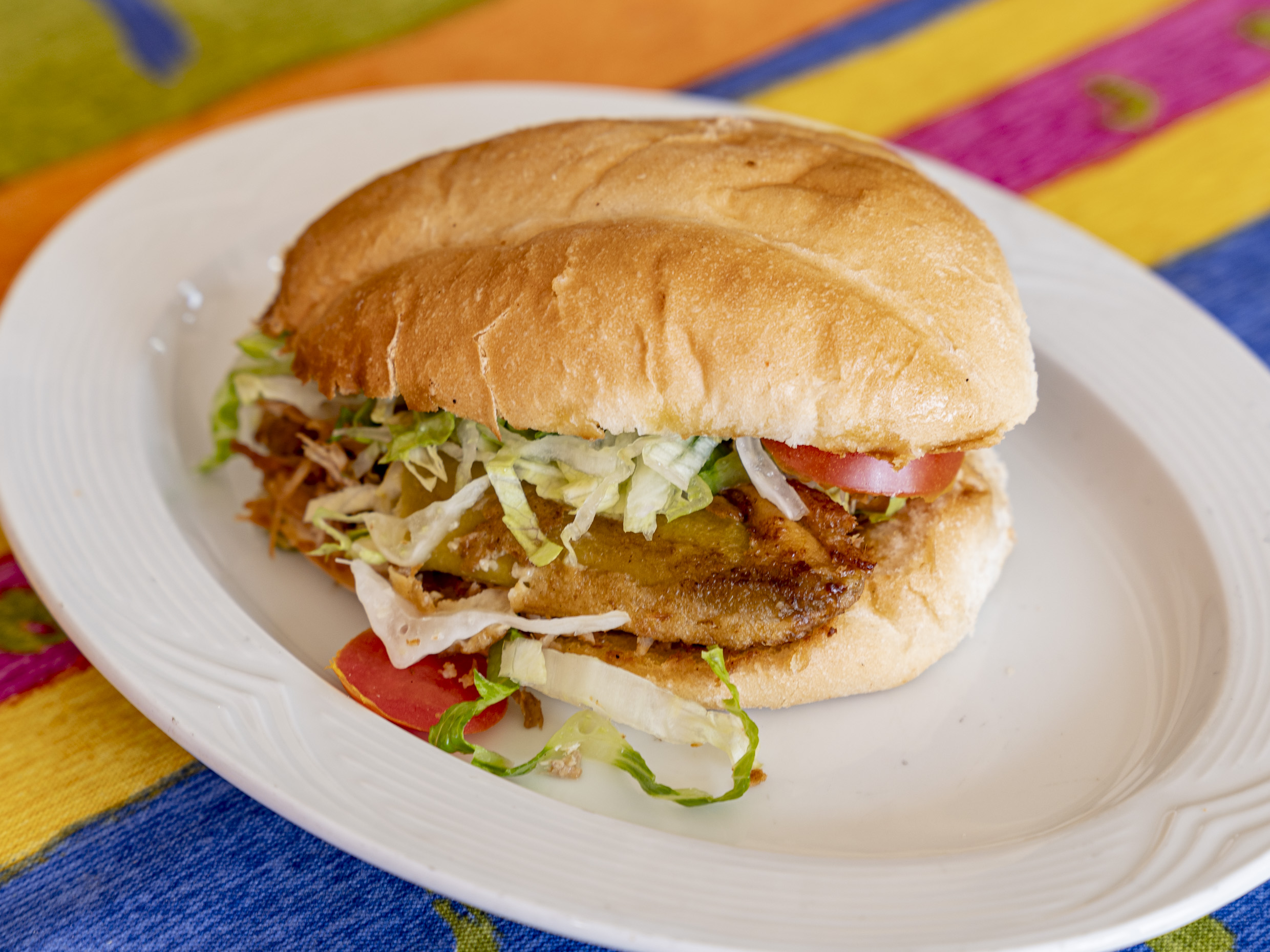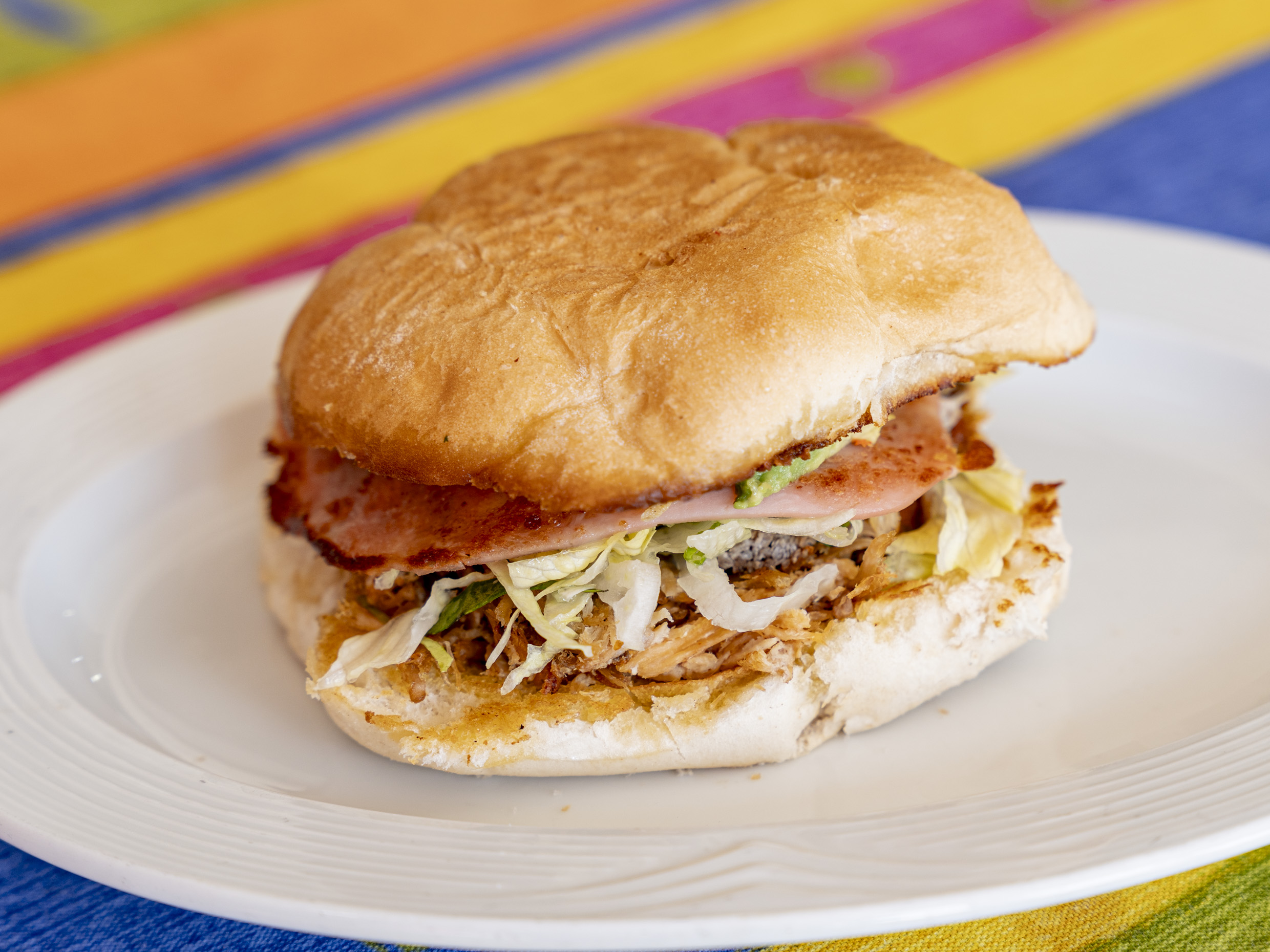 Deliciosa pierna de puerco doradita, verdura, jamón, queso, y aguacate.