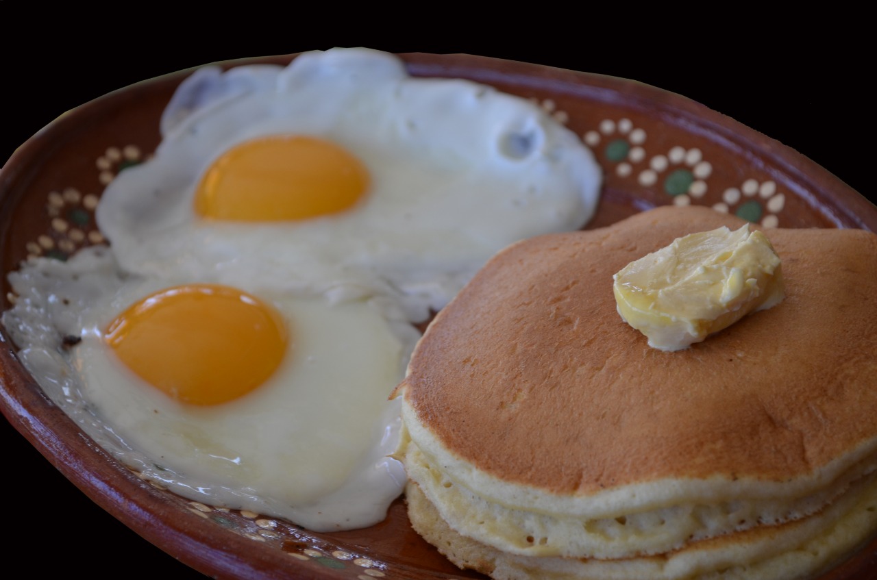 Huevos al gusto acompañado de 2 complementos Y dos hot cakes.