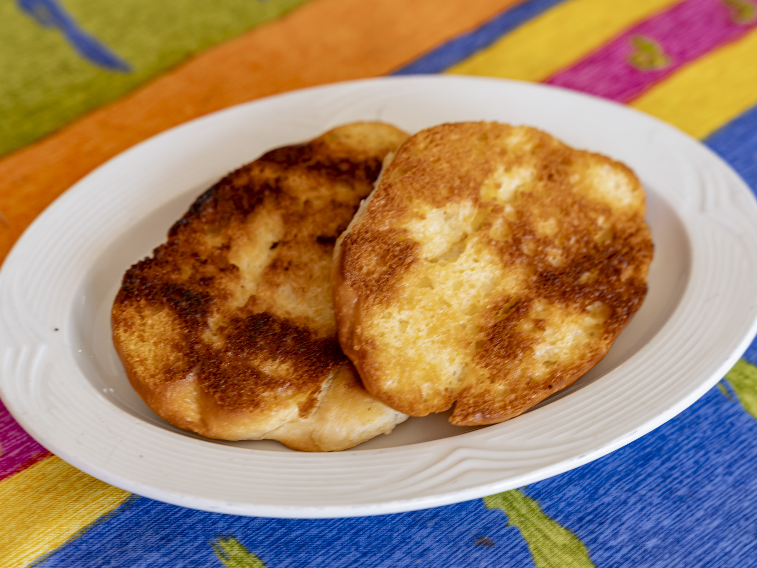 Pan telera tostado con mantequilla 2 piezas, incluye porción individual de mermelada para untar.