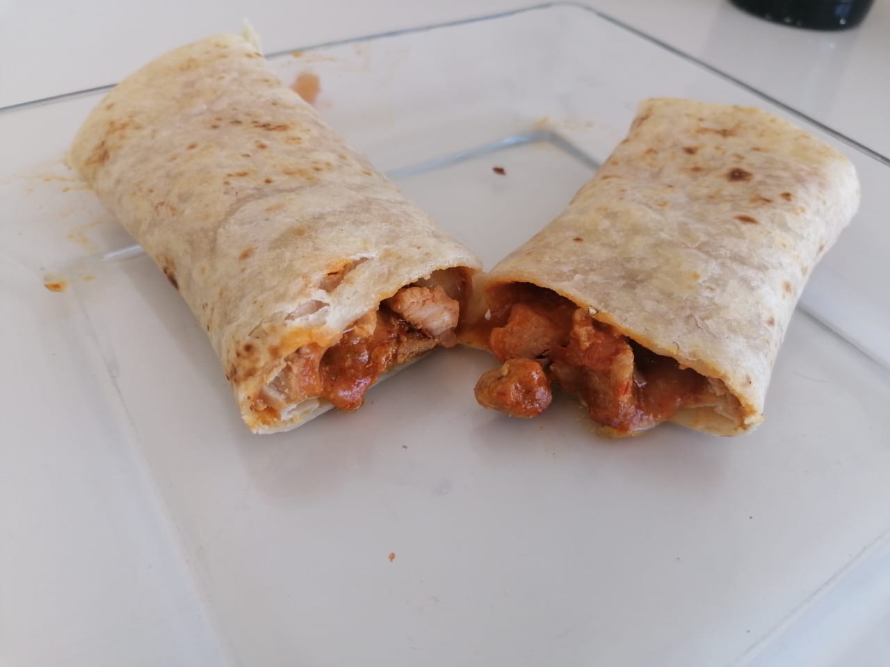 Tortilla de harina casera más pierna doradita más lechuga más tomate más aguacate.