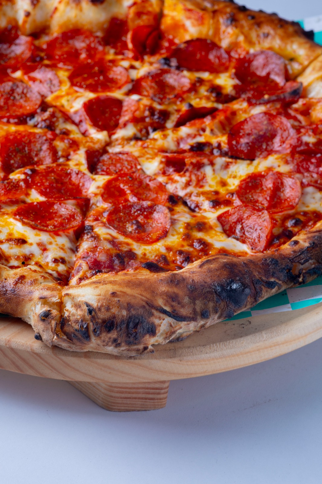 Salsa de tomate, pepperoni y mix de quesos, 8 rebanadas.