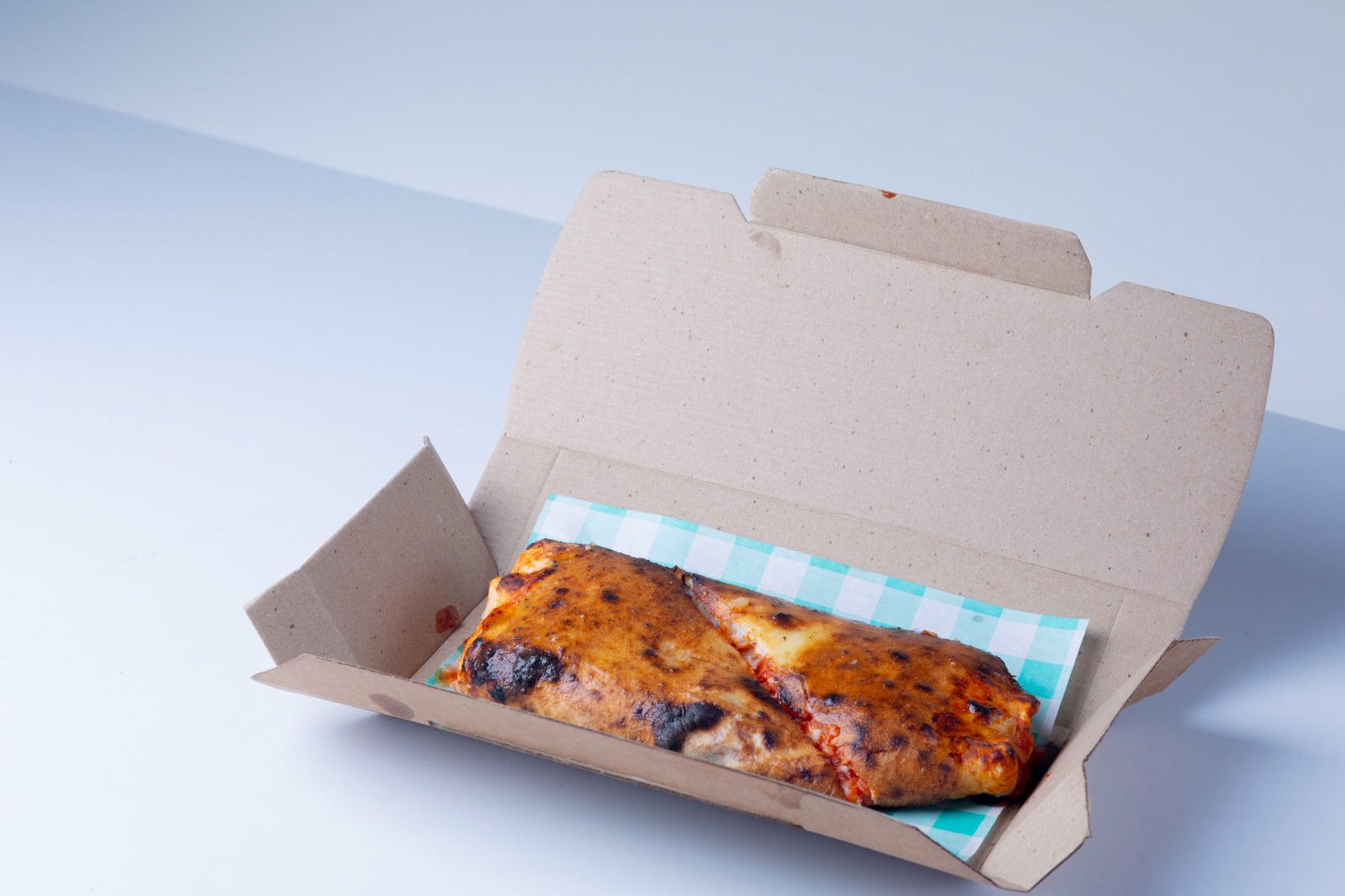 Masa de pizza enrollada con relleno de salsa de tomate, salchicha italiana, morrón, aceitunas negras, champiñones y mix de quesos con un aderezo a elegir.